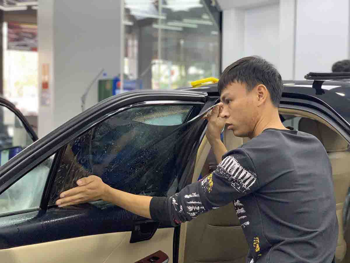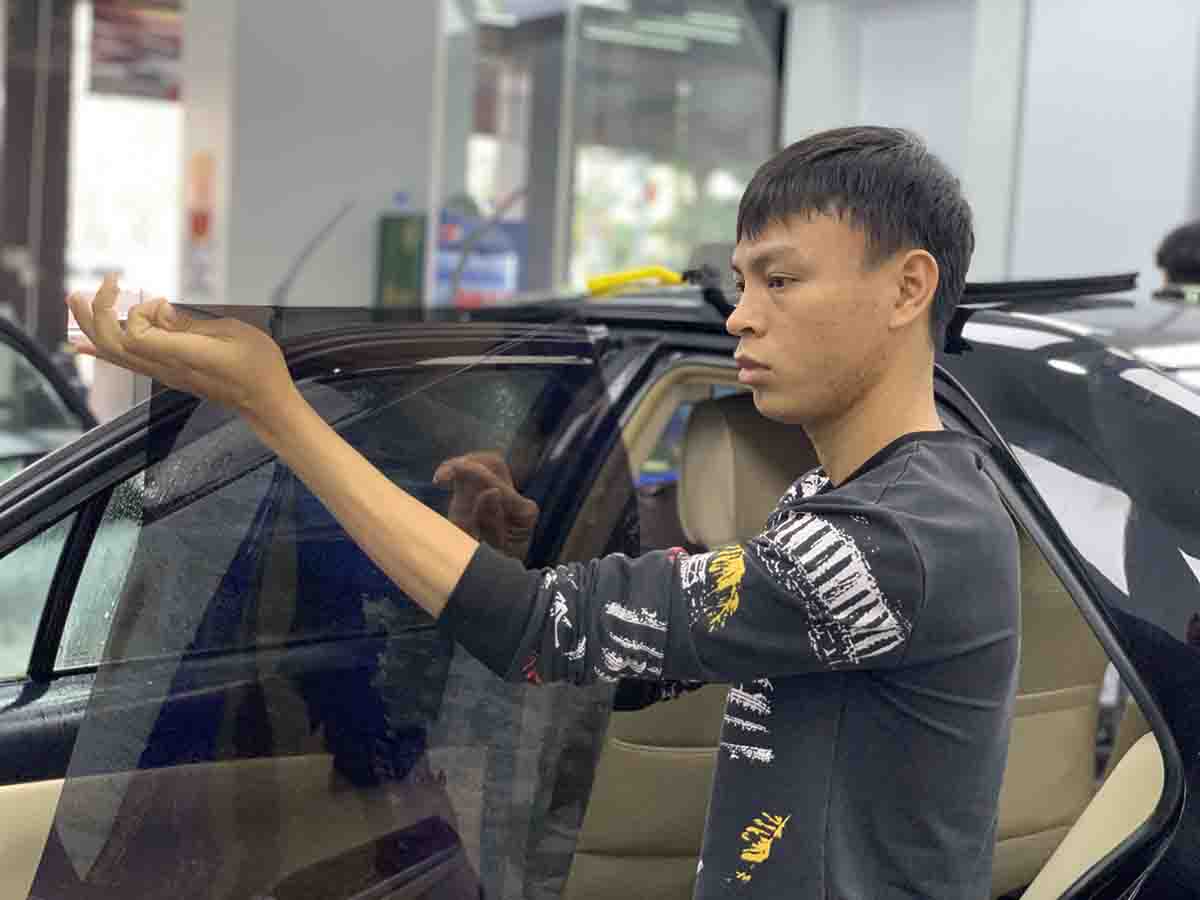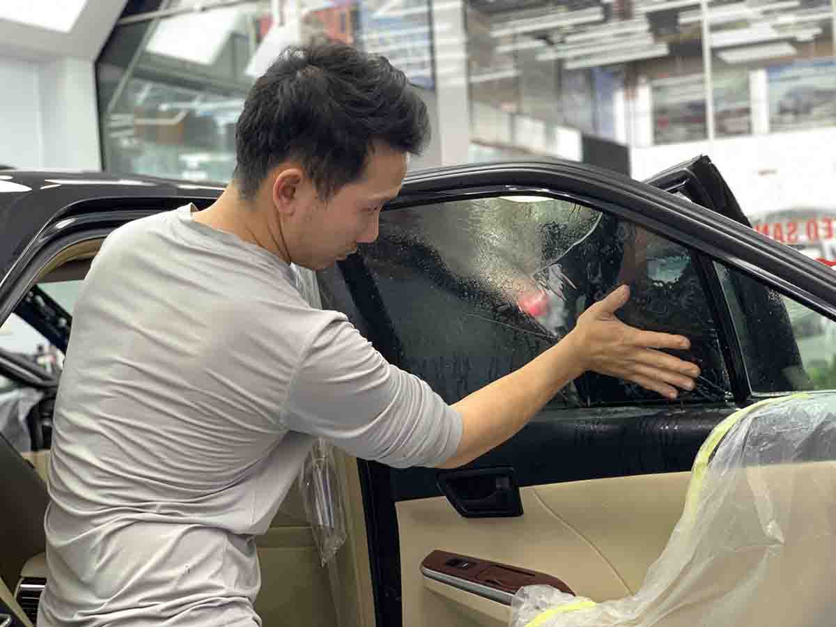 Sau khi hoàn tất, kỹ thuật viên kiểm tra lại toàn bộ kính xe để đảm bảo lớp phim được dán chuẩn xác, không bị bong mép hay nổi bọt khí.