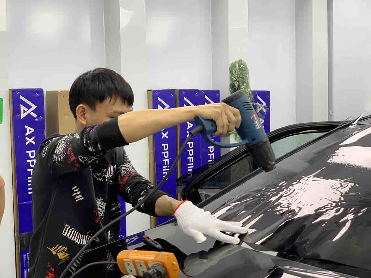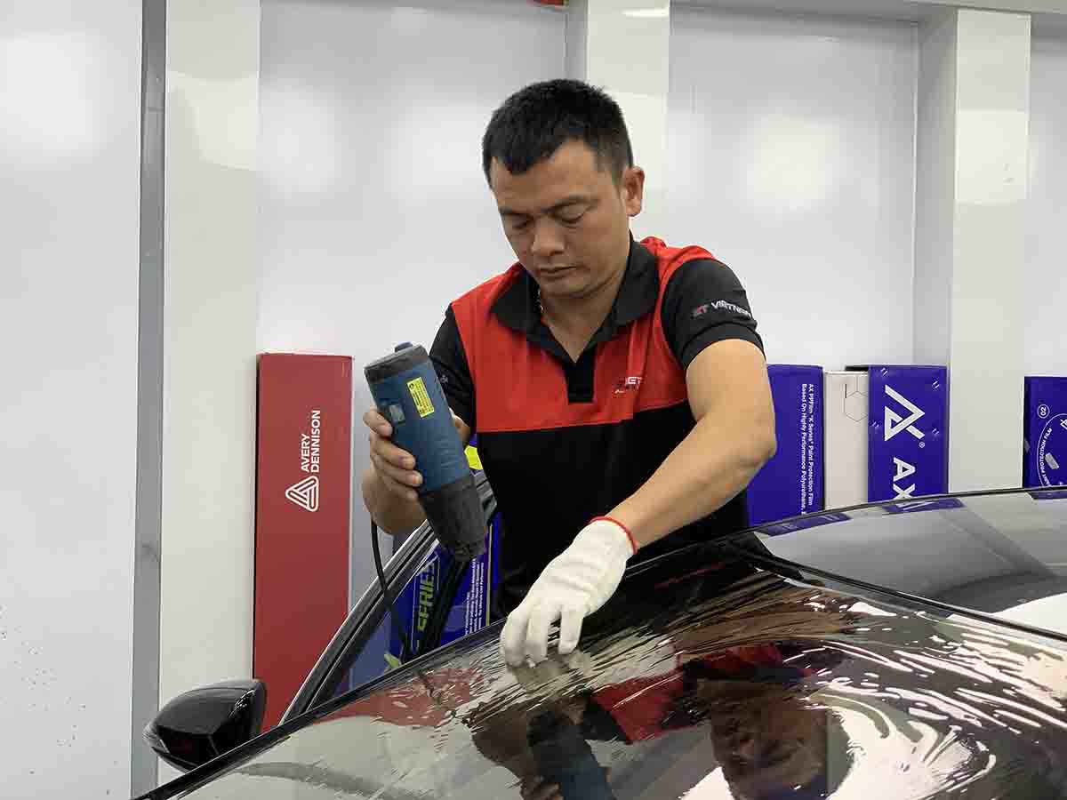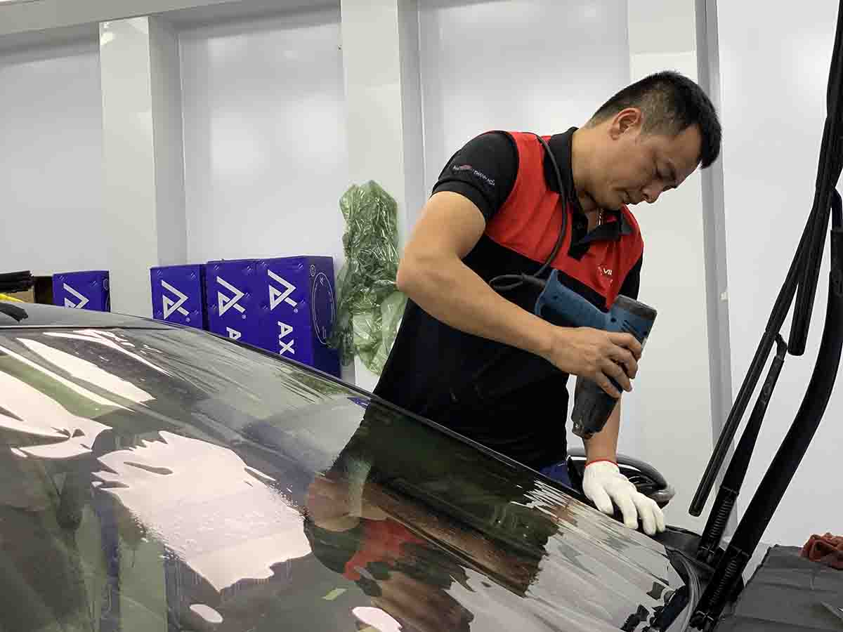 Sau khi hoàn tất, kỹ thuật viên kiểm tra lại toàn bộ kính xe để đảm bảo lớp phim được dán chuẩn xác, không bị bong mép hay nổi bọt khí.