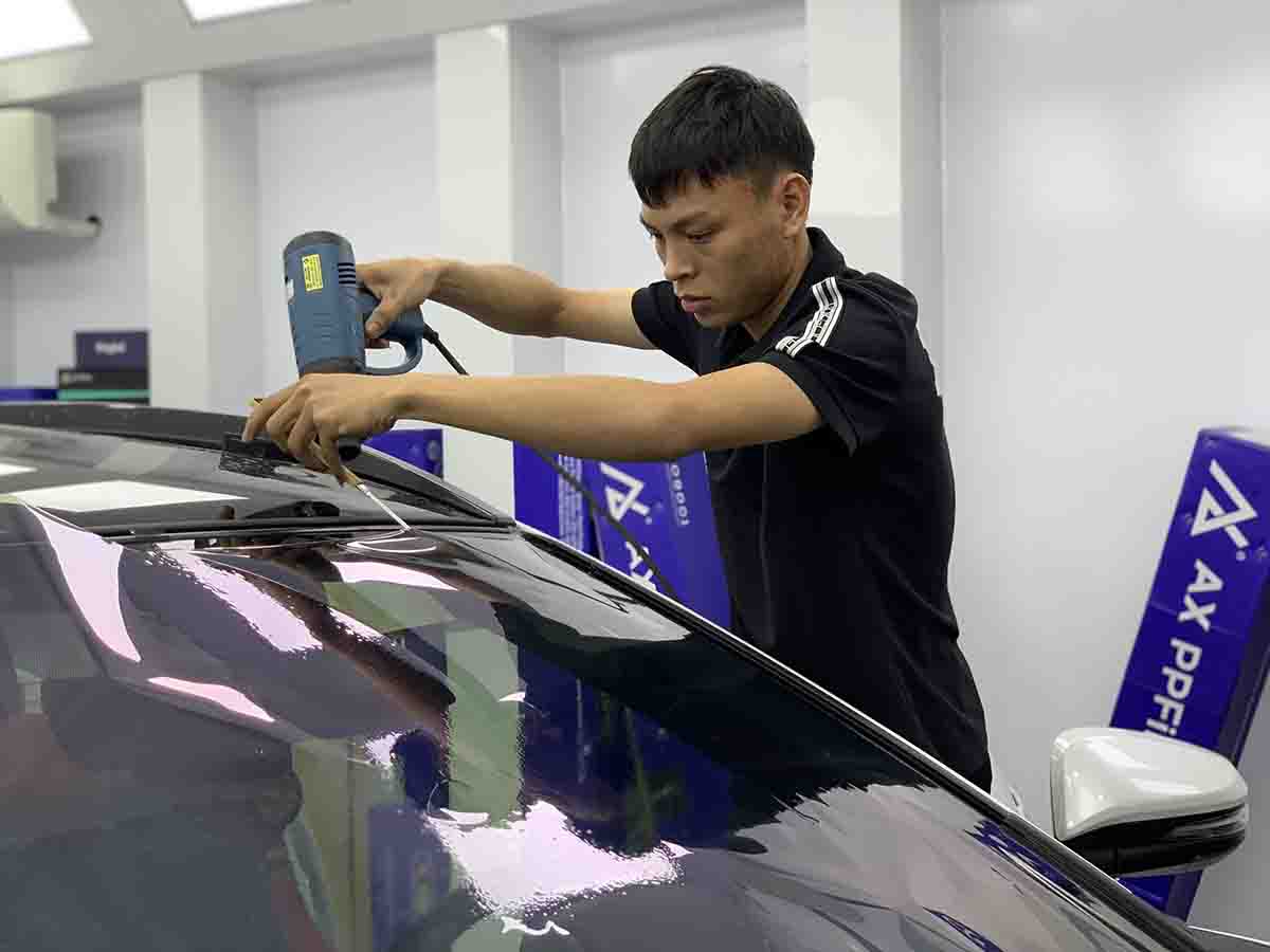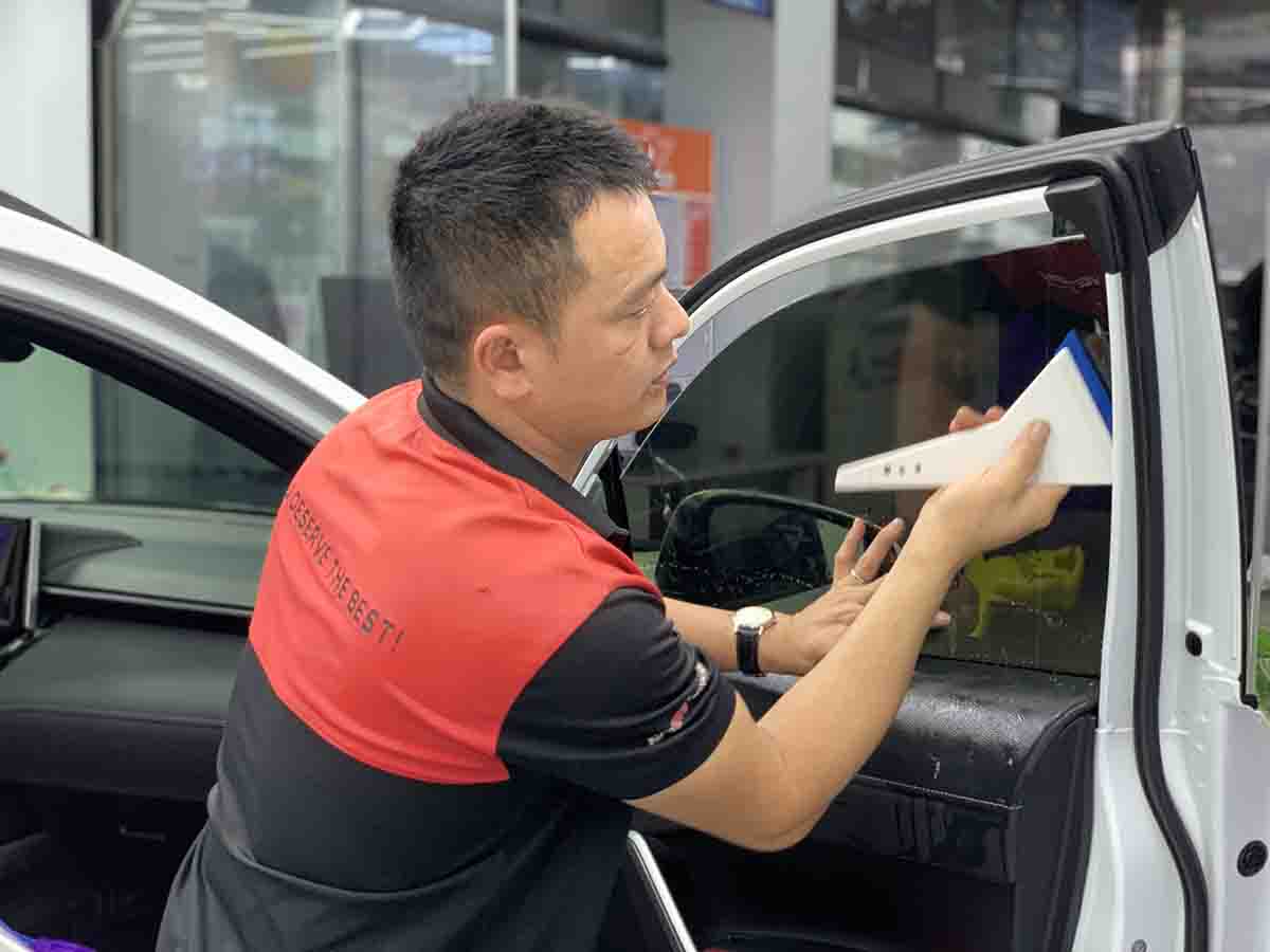 Sau khi hoàn tất, kỹ thuật viên sẽ kiểm tra lại toàn bộ kính xe để đảm bảo lớp phim được dán chính xác, không bị bong mép hoặc nổi bọt khí.