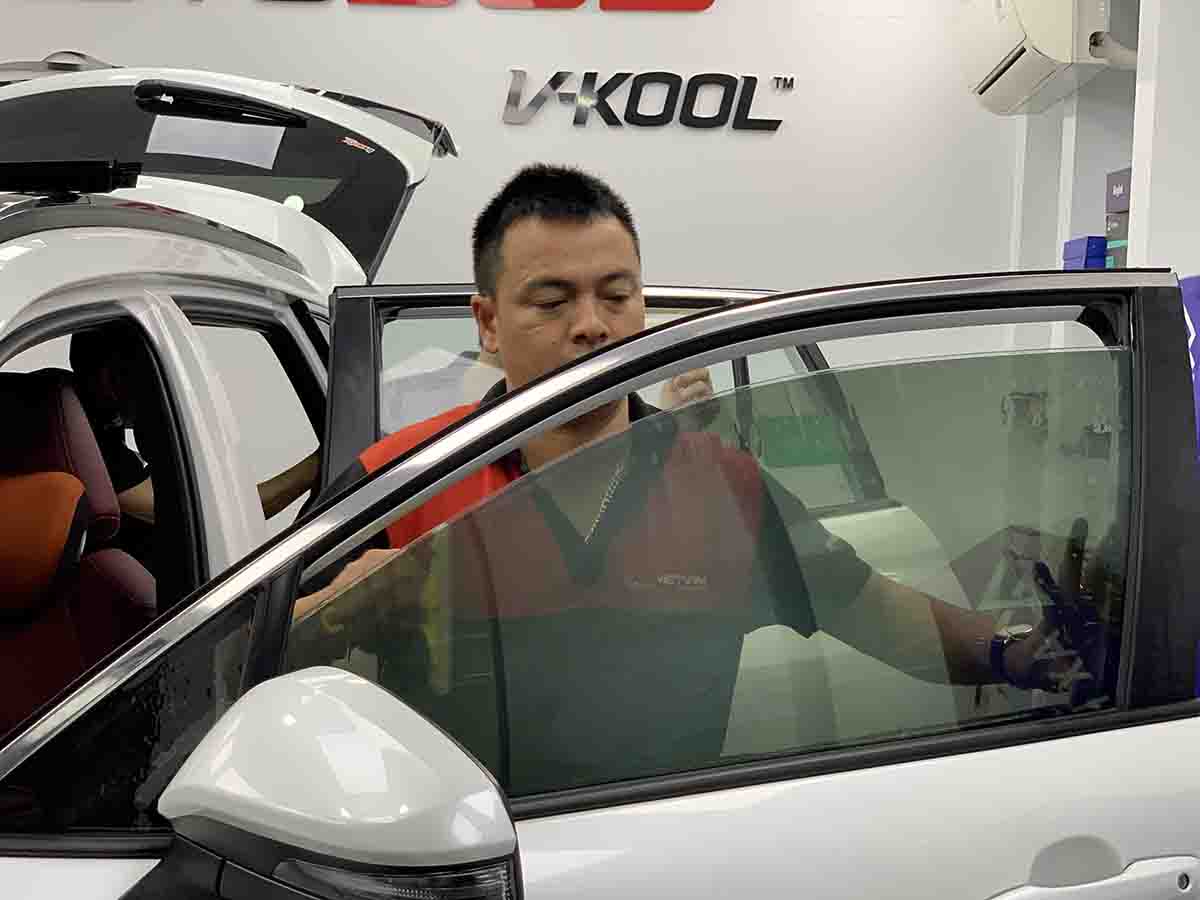 Phim cách nhiệt được cắt chính xác theo kích thước từng vị trí kính trên xe Cross 2025 để đảm bảo độ vừa vặn và thẩm mỹ.
