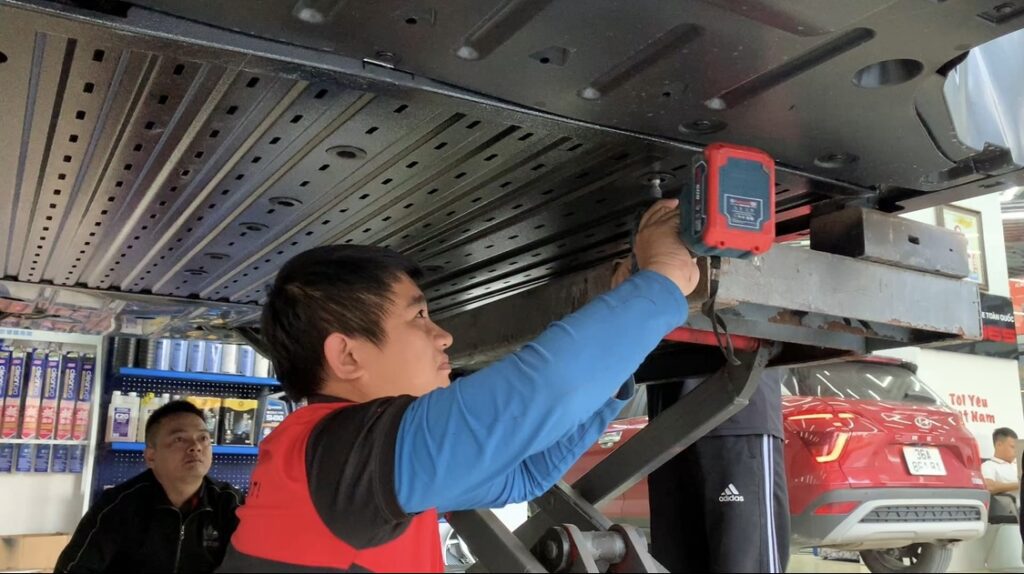 Hình ảnh thi công lắp đặt tấm ốp bảo vệ pin cho VinFast Limo Green